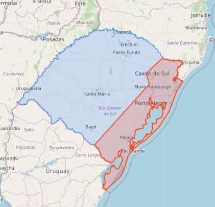 A Defesa Civil do RS emitiu neste sábado(10), um alerta para chuvas intensas, possibilidades de trovoadas e rajadas de ventos moderados a fortes nas regiões em vermelho.