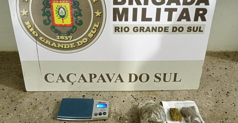 Após o recebimento de uma denúncia anônima, referente a um casal no interior de um veículo Fiat/Palio de cor prata, estacionado na Rua Borges de Medeiros, quase esquina com a Rua Sete de Setembro, em atitude suspeita, as Guarnições de Serviço da Brigada Militar de Caçapava do Sul deslocaram até o endereço citado e abordaram o referido veículo, onde se encontrava um casal, ambos de 28 anos, sendo encontrado durante as buscas, com o homem e no interior do veículo uma certa quantidade de drogas, R$ 40,00 em dinheiro e uma balança de precisão, diante dos fatos fora dada voz de prisão ao casal.