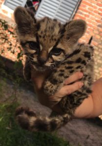 Na manhã de hoje (14/10), uma guarnição do 2º BABM, do município de São Gabriel, deslocou até Caçapava do Sul, para verificar uma denúncia repassada por uma ONG de proteção a animais do município, a qual informou que em uma casa na área urbana estaria um Gato do Mato (filhote) de aproximadamente dois meses de idade, da espécie “Leopardus trigrinus”. No local foi realizado contato com a autora, que fez a entrega do animal para a guarnição.