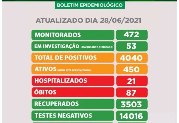 Foram registrados +02 óbitos desde o último boletim, sendo 87 as mortes ligadas a Covid-19 até a presente data.