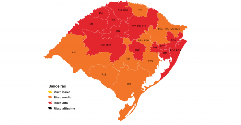 Divulgada nesta sexta-feira (5/2), a classificação prévia traz 13 regiões em bandeira vermelha – duas a mais do que na rodada anterior. As outras oito regiões receberam bandeira laranja.
