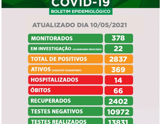 Foi registrado 01 óbito desde o último boletim, e são 66 as mortes ligadas a Covid-19 até a presente data.