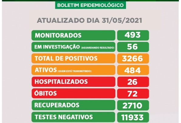 Não foram registrados óbitos desde o último boletim e permanecem 72 as mortes ligadas a Covid-19 até a presente data.