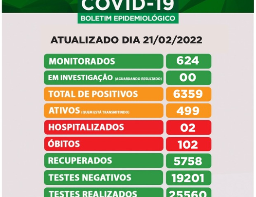 Os Monitorados, pessoas tiveram contato direto com outras que testaram positivo para Covid e que estão isoladas agora são 624, ou seja, -14 pessoas que no boletim anterior.