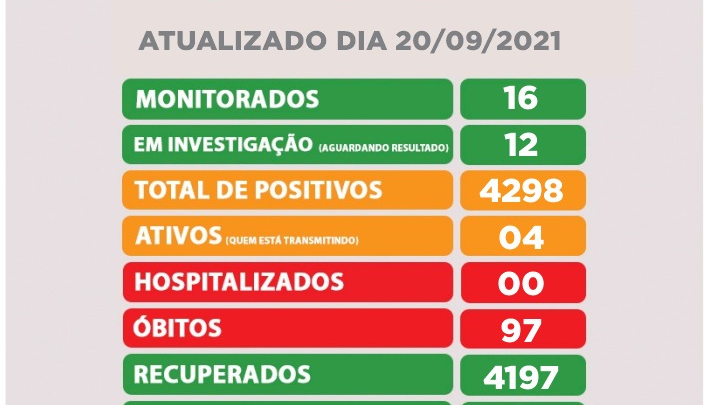 O boletim informa que não há pacientes hospitalizado, por Covid-19.