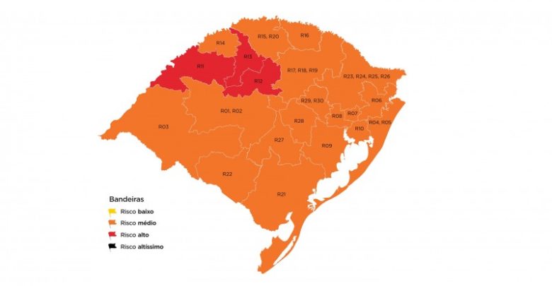 As regiões de Cruz Alta, Ijuí e Santo Ângelo – todas da macrorregião Missioneira, que estavam na bandeira laranja –, também apresentaram piora nos indicadores e voltaram para a bandeira vermelha.