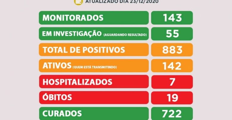 O número de negativos subiu de 4942 para 5006 ou seja, 64 a mais que no boletim anterior. Os Monitorados, pessoas que tiveram contato direto com outras que testaram positivo para Covid e que estão isoladas, que eram 163 agora são 143 apresentando diferença de -20 pessoas.
