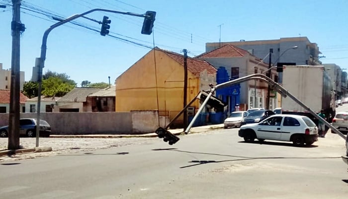 Um caminhão teria sido o responsável pela queda de um semáforo no centro de Caçapava do Sul.