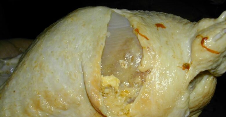 A celulite em frangos foi relatada pela primeira vez em 1984 na Inglaterra. É um processo infeccioso, inflamatório purulento, que, através de bactérias, invade o tecido subcutâneo devido ao rompimento da integridade da pele (cortes, arranhões ou outras abrasões). A celulite forma placas fibrino-caseosas que, às vezes, se estendem até os músculos, principalmente na região abdominal e pernas.