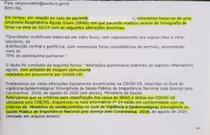 Cenyra informou ainda que a divergência na informação da causa morte pode ocorrer, uma vez que existe um protocolo específico com diversos itens que podem serem preenchidos, ou não, na certidão de óbito, e que, casos de covid-19 muitas vezes são preenchidos como síndromes respiratórias agudas, ou pulmonares, sendo que, esta última, pulmonar, consta na Certidão de Óbito apresentado pela família da vítima (essa constatação pode ser comprovado com Documento emitido pelo COE-RS anexo à materia).