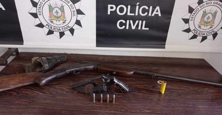 Foram apreendidos um revólver calibre 38, uma espingarda calibre 20 e munições.