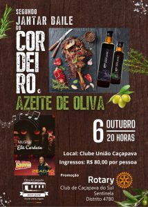 “Para facilitar a participação dos visitantes que virão de outros lugares, estamos buscando parceria com a rede hoteleira. Da mesma forma, alguns estabelecimentos comerciais poderão ser pontos de venda”, explica Neli Coradini Abascal, representante da equipe rotariana que coordena o evento. As entradas para o Jantar Baile do Cordeiro e do Azeite de Oliva são vendidas a R$ 80,00 por pessoa.