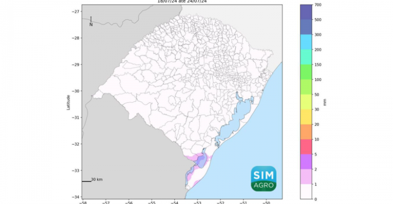 Na terça-feira (23/07) este padrão atmosférico deve se repetir. Na quarta-feira (24/07), a conjunção de fatores em baixos, médios e altos níveis atmosféricos contribuirão para formação de instabilidades no Sul do estado, possibilitando chuvas de intensidade fraca na região.