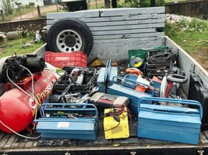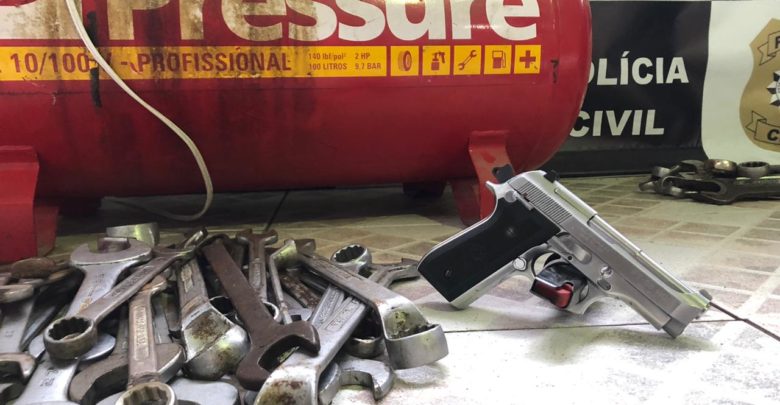 Com o indivíduo foram apreendidos uma pistola calibre 380 com a numeração suprimida, diversas ferramentas oriundas de furto e 4 tatus congelados.
