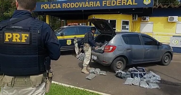Lá, a droga foi pesada, totalizando 75,6 quilos, o que representa a maior apreensão dessa substância feita pela PRF nas rodovias gaúchas. O recorde anterior foi em uma apreensão de 56 quilos da droga em um T-Cross abordado em Caxias do Sul em janeiro deste ano.