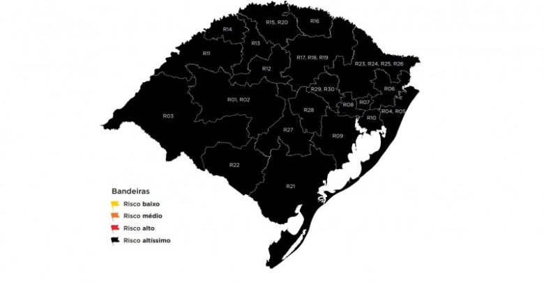 O mapa da 47ª rodada do Distanciamento Controlado, divulgado nesta sexta-feira (26/3), traz todas as 21 regiões Covid em risco máximo, com altíssima taxa de ocupação hospitalar e velocidade de propagação do coronavírus. Isso significa que, pela quinta semana seguida, todo o Rio Grande do Sul ficará em bandeira preta.