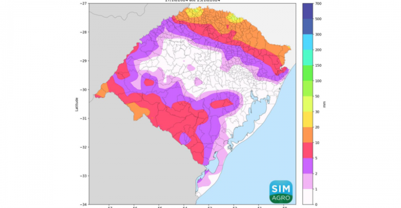 O prognóstico para a próxima semana indica chuvas fracas, com possibilidade de se intensificarem para moderadas em pontos isolados nas regiões Sul, Oeste, Noroeste e Norte do estado. Os volumes previstos devem chegar a até 20 mm. No litoral e nas áreas centrais, não são esperadas precipitações durante o período.