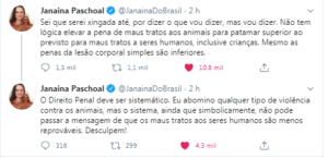 Nas redes sociais, internautas e figuras políticas criticaram a lei por ter como mais valiosa a vida de animais do que de pessoas.