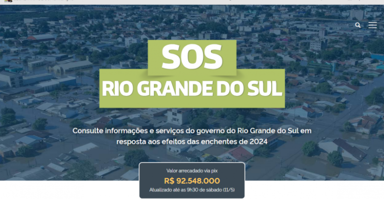 Lançado após a enchente que atingiu o Vale do Taquari em setembro de 2023, o site SOS Rio Grande do Sul (sosenchentes.rs.gov.br) foi reformulado, ampliando os recursos e serviços para acompanhamento da situação relativa ao atual evento meteorológico adverso. Uma das novidades é a possibilidade de acompanhar a arrecadação de doações por meio do pix, com atualizações duas vezes por dia.