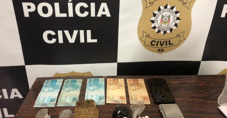 Homem é preso em flagrante por tráfico de entorpecentes. Com o indivíduo, no bairro Persa, foram apreendidos 238g de maconha, 82g de cocaína, R$ 400,00 e uma balança de precisão. #DP_CaçapavaDoSul