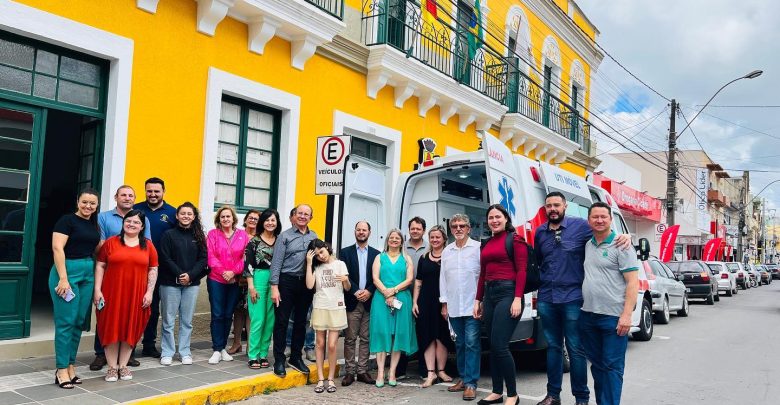 O prefeito de Caçapava do Sul, Giovani Amestoy, acompanhado do seu vice-prefeito e secretário Geral, Luiz Carlos Guglielmin e vereadora Patrícia Castro, que retorna a Secretaria da Saúde ainda neste mês, realizaram a entrega oficial da UTI Móvel para transporte de pacientes em atendimento emergencial na manhã da segunda-feira, 11.