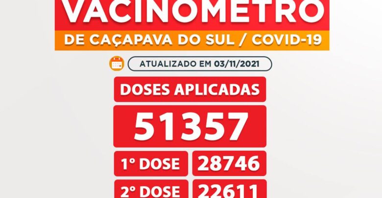 Até o momento foram 51.357 doses aplicadas ao total em Caçapava do Sul, destas, 28.746 foram da primeira dose, 22.611 da segunda dose do imunizante (67% da população com esquema vacinal completo) e 2363 da terceira dose para os grupos já determinados conforme a chegada de cada remessa das vacinas.