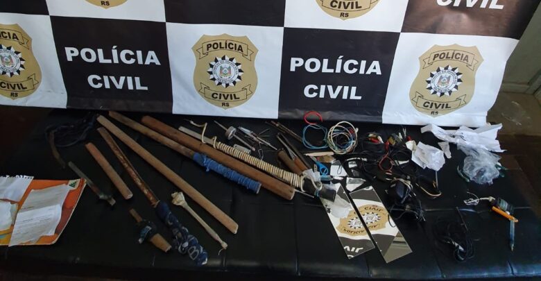 Facas artesanais são apreendidas durante cumprimento de mba nas dependências do Presídio Estadual de Caçapava do Sul.